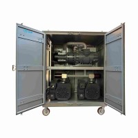 由罗茨泵(机械增压泵)为主泵,旋片式真空泵或液环式真空泵为前级泵组成。机组主要用于对需要大抽速和获得中、高真空的各种真空系统进行抽真空及干燥处理,特别适用于变压器的抽真空作业。此真空干燥抽气机组广泛用于真空冶炼、真空热处理、焊接、化工制药、真空镀膜、电子元器件等行业的抽真空干燥处理。